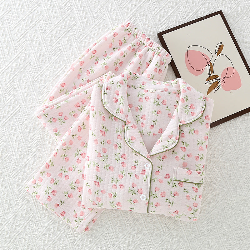 Autumn And Winter Pajamas Women's Quilted To Keep Warm Lapel Women Can Wear Outside
